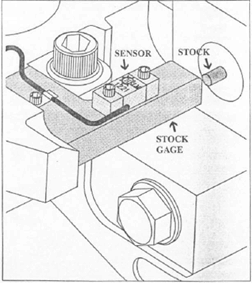 The sensor easily mounts to your machine’s stock gage and registers the impact each time a full length fedd comes in contact with the stock gage up.