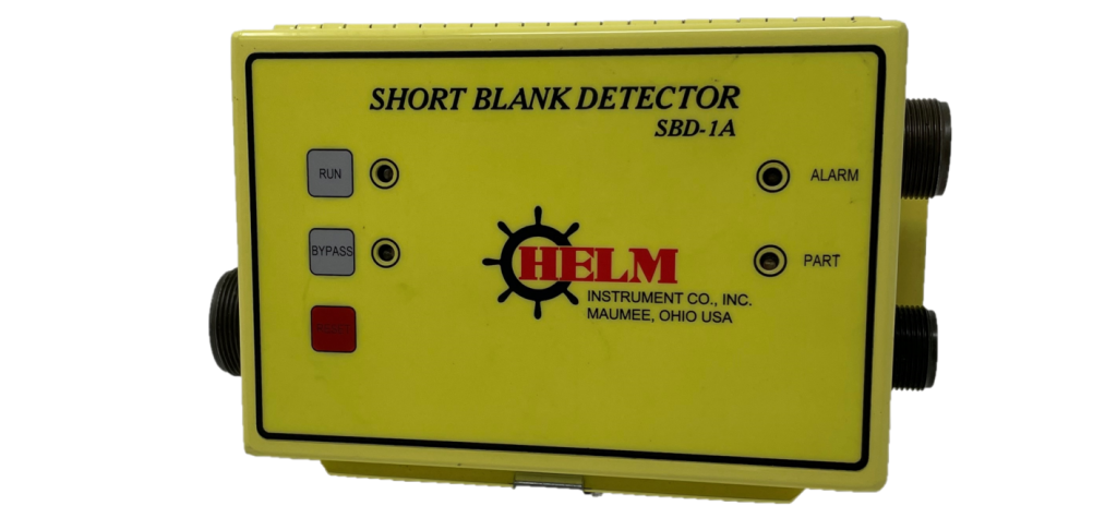 The HELM Short Blank Detector is a simple and effective instrument that detects when the proper feed is achieved. Its sensor easily mounts to your machine’s stock gage tip. If the cutoff is short and doesn’t reach the stock gage, the detector will give warning of a short feed. The unit with then relay this information to auxiliary blank drop mechanisms, feed stops or machine shut-down controls.